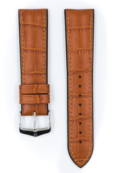 An new take on an evergreen.timeless | classy | reliable MATERIALThe finest Italian calfskin with natural-looking alligator grain and semi-mat finish in characteristic two-toneHIRSCH Premium Caoutchouc core Bracelet details BRACELET DETAILSSporty, classic designAccentuated patented seamEmbedded fixed loopHigh-quality stainless steel buckle in HIRSCH Classic Design