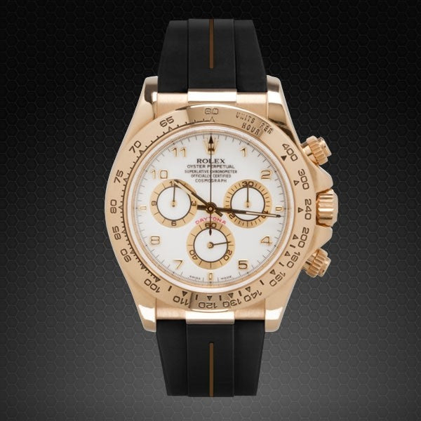Vulcanized rubber strap engineered to fit Rolex case and deployment buckle.* (NOT compatible with the new Glidelock clasp.)