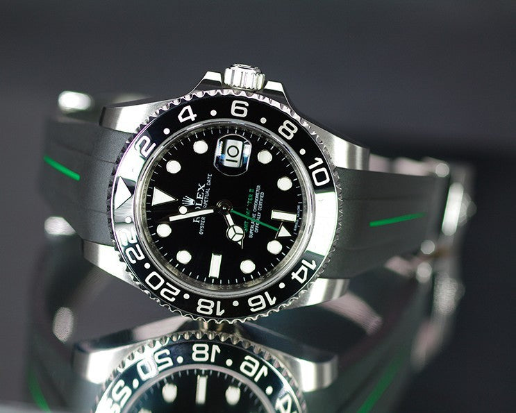 Vulcanized rubber strap engineered to fit Rolex case and clasp*. (NOT compatible with the new Glidelock clasp.)