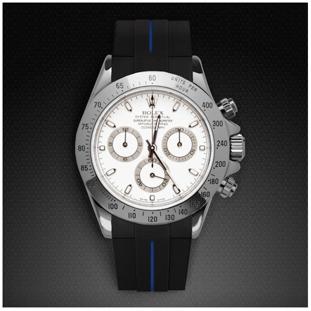 Vulcanized Rubber B strap precision engineered to fit Rolex Daytona, GMT II CR, Submariner 14060, Sea-Dweller 4000 CR, Omega Moonwatch, Moonswatch, Seamaster and many other watches with 20mm lugs size.
