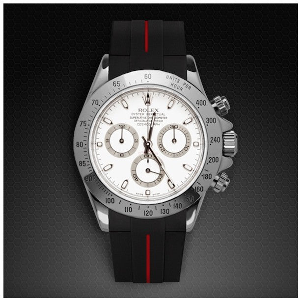 Vulcanized Rubber B strap precision engineered to fit Rolex Daytona, GMT II CR, Submariner 14060, Sea-Dweller 4000 CR, Omega Moonwatch, Moonswatch, Seamaster and many other watches with 20mm lugs size.