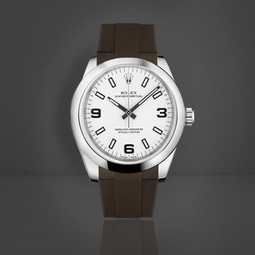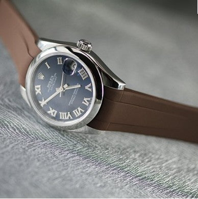Vulcanized rubber strap which is precisely calibrated to fit the case and clasp of Rolex Oyster Perpetual 31mm (16mm lug space ONLY) and Datejust 31 (16mm Lug Space ONLY). This strap utilizes "Blocked Integration" engineering, incorporating solid inserts for a flawless, motionless flush mount to the watch case. NOTE: This strap is NOT compatible with "Day-Date" titled models.