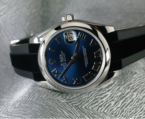 Vulcanized rubber strap which is precisely calibrated to fit the case and clasp of Rolex Oyster Perpetual 31mm (16mm lug space ONLY) and Datejust 31 (16mm Lug Space ONLY). This strap utilizes "Blocked Integration" engineering, incorporating solid inserts for a flawless, motionless flush mount to the watch case. NOTE: This strap is NOT compatible with "Day-Date" titled models.